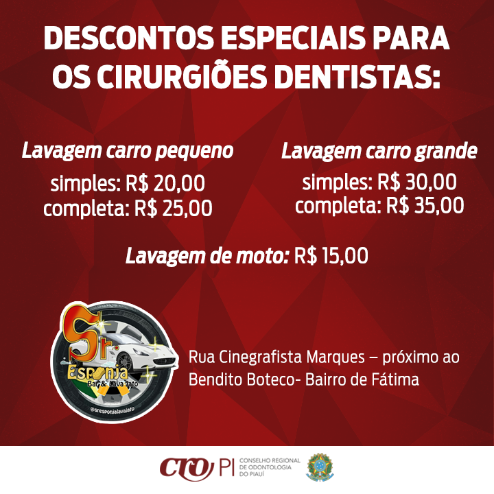Dando continuidade às ações de valorização dos cirurgiões dentistas, o Conselho Regional de Odontologia do Piauí (CRO/PI) firmou mais uma parceria. Dessa vez, com a Sponja Bar e Lava jato, especialista em lavagem e polimento veicular em Teresina.